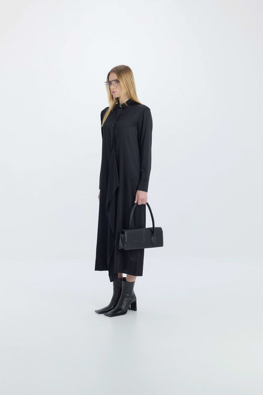 Low in StockDRAPED SATIN SILK SHIRT DRESS