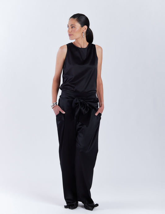 Low in StockSTONEWASH SILK PANTS WITH BOW