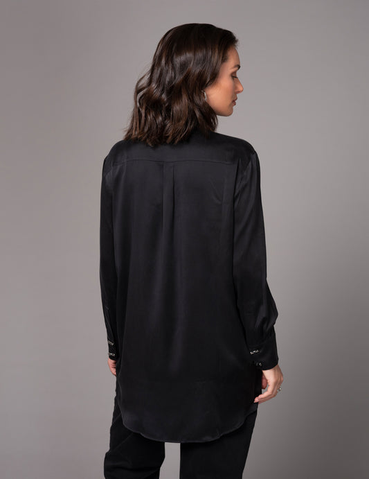 Low in StockDRAPED SATIN SILK SHIRT DRESS