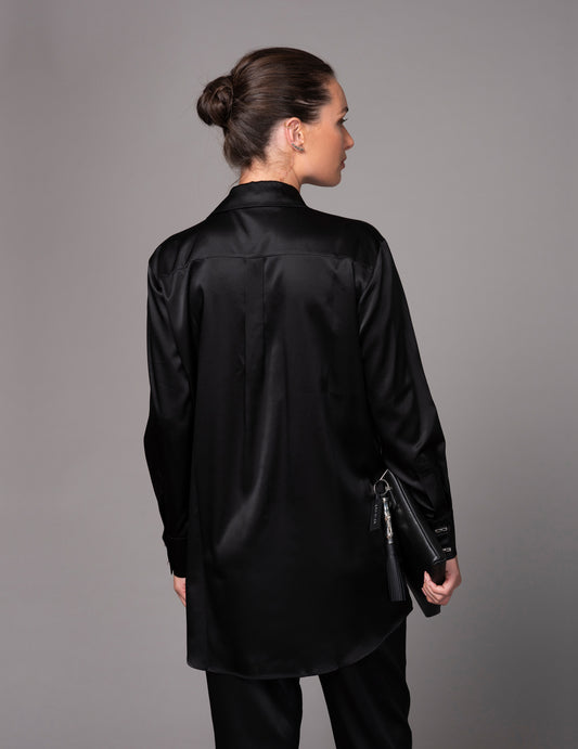 Low in StockBLACK HIDDEN BUTTON SHIRT