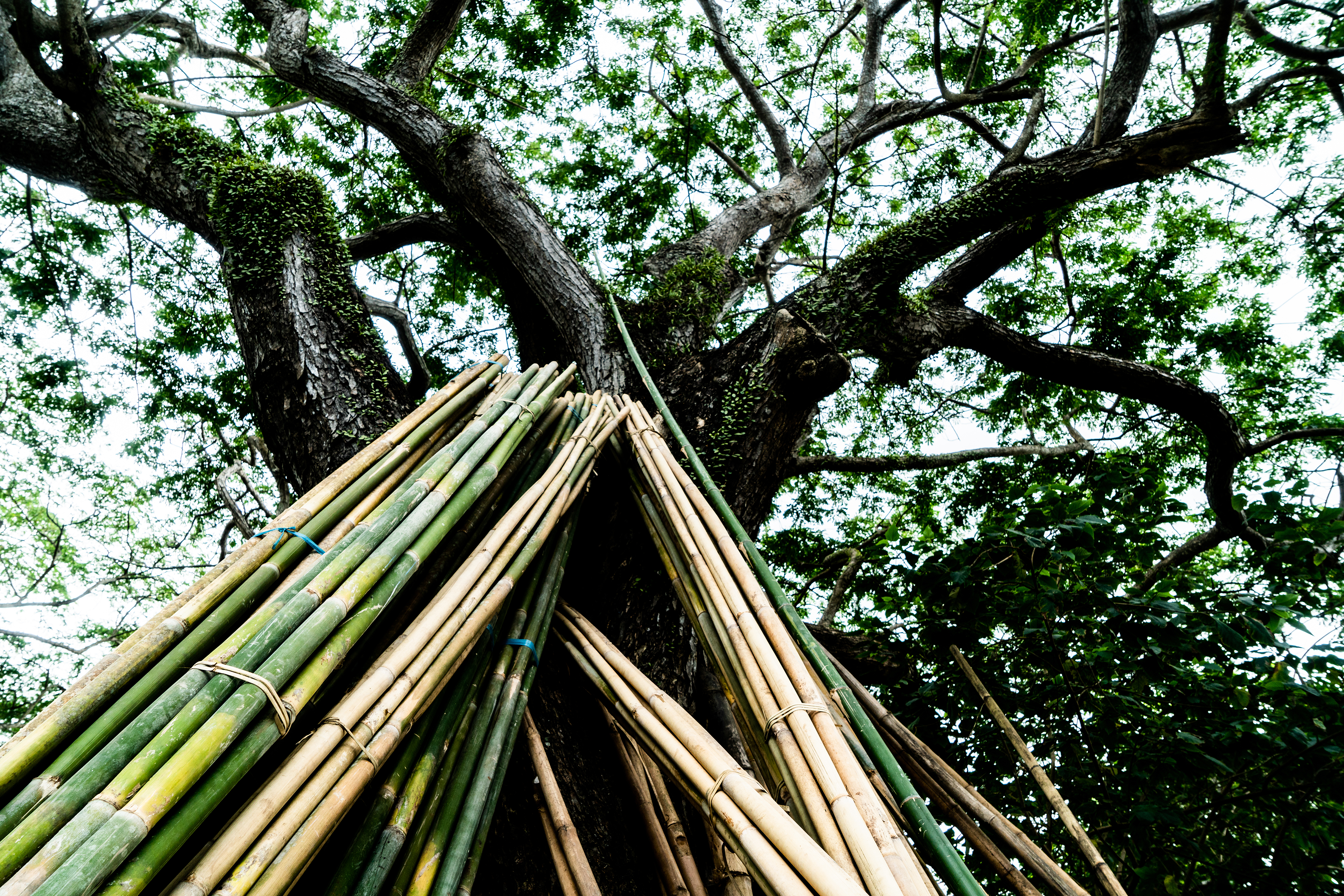 The elongated bamboo rods, reminiscent of the "naked" rolls of cloth found in textile factory warehouses, sparked Heifetz's artistic exploration. Through painting and carving, she began to transform this natural and local material, "dressing up" the bamboo with captivating textile prints and textures.